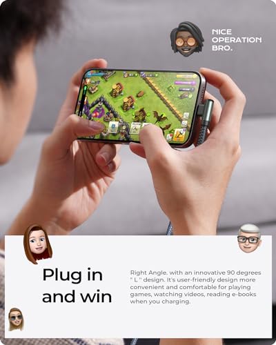 - [Upgraded Exclusive Right Angle Design] This right angle type c charging cable fast charge with an innovative 90 degrees " L " design. It's user-friendly design more convenient and comfortable for playing games, watching videos, reading e-books when you charging. 【 NOTE: The thickness of the compatible mobile phone case charging port is 5.5mm.】