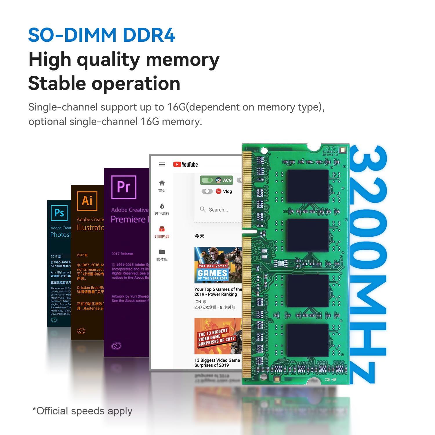 - ✔️16GB DDR4 + 500GB SSD, Upgrade Friendly - Beelink N100 mini pc has built-in single channel 16GB DDR4 RAM (max 3200MHz) and 500GB PCIe 1X SSD. You can replace the SSD to max 2TB or add a 2TB of 2.5-inch 7mm HDD/M.2 SSD 2280 (not included) to expand the storage. Large capacity enables you to switch back and forth between more applications and save more favorite documents or movies.