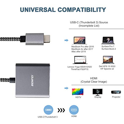 - BROAD COMPATIBILITY - The BENFEI USB-C to HDMI is compatible with 13"/15" MacBook Pro 2019, 2018, 2017, iMac, MacBook, MacBook Air, Google Chromebook Pixel,Lenovo 900, Dell XPS 13 (9350), Dell XPS 15 9550, Dell XPS12 9250, DellPrecision 5510, HP Spectre X2, HP Spectre x360, HP Elitebook Folio G1, HP Elite x2 1012 G1, Acer Switch Alpha 1, Acer Spin 7, Acer Chromebook R13, Samsung Chromebook Plus, Samsung Galaxy TabPro S,Samsung Galaxy A7 2017, LG G5, LG V20, HTC 10
