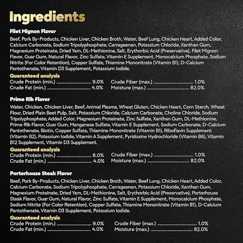 Details: We love dogs, and that’s why we’ve created our delicious wet dog food with quality ingredients in culinary-inspired flavors they can’t resist. Indulge your dog’s sophisticated palate with this CESAR Wet Food Steak Lovers Variety Pack. All three recipes are crafted with beef for a meaty taste and texture dogs love. And because our pets are like family, they also deliver 100% complete and balanced nutrition with vitamins and minerals to help dogs of all sizes, especially small dogs, stay healthy. This soft dog food makes a great meal on its own, or can be a special treat on top of their favorite dry kibble. Just peel away the convenient, easy peel freshness seal, and you can be sure your best friend is getting a delicious meal every time… because they deserve it.