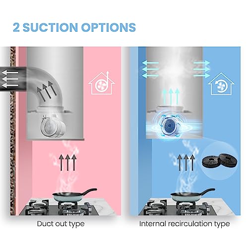 - 【Dual Suction Types】 Suction types can be switched to duct out type or internal recirculation type depending on your needs. Internal recirculation is beneficial to filter out the grease and cooking odors, providing a better cooking environment(need to purchase filter separately ). The duct out type exhausts cooking fumes outside the house thoroughly and keep your kitchen air fresh indeed. Duct-out Type does not need carbon filters.