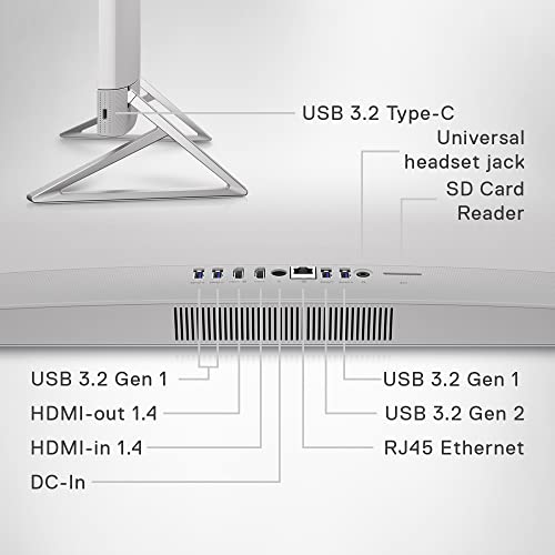 - TV-INSPIRED DISPLAY: Stunning 27-inch All-In-One desktop with TV-inspired design available in Snowflake, with triangle stand and molded speaker mesh.