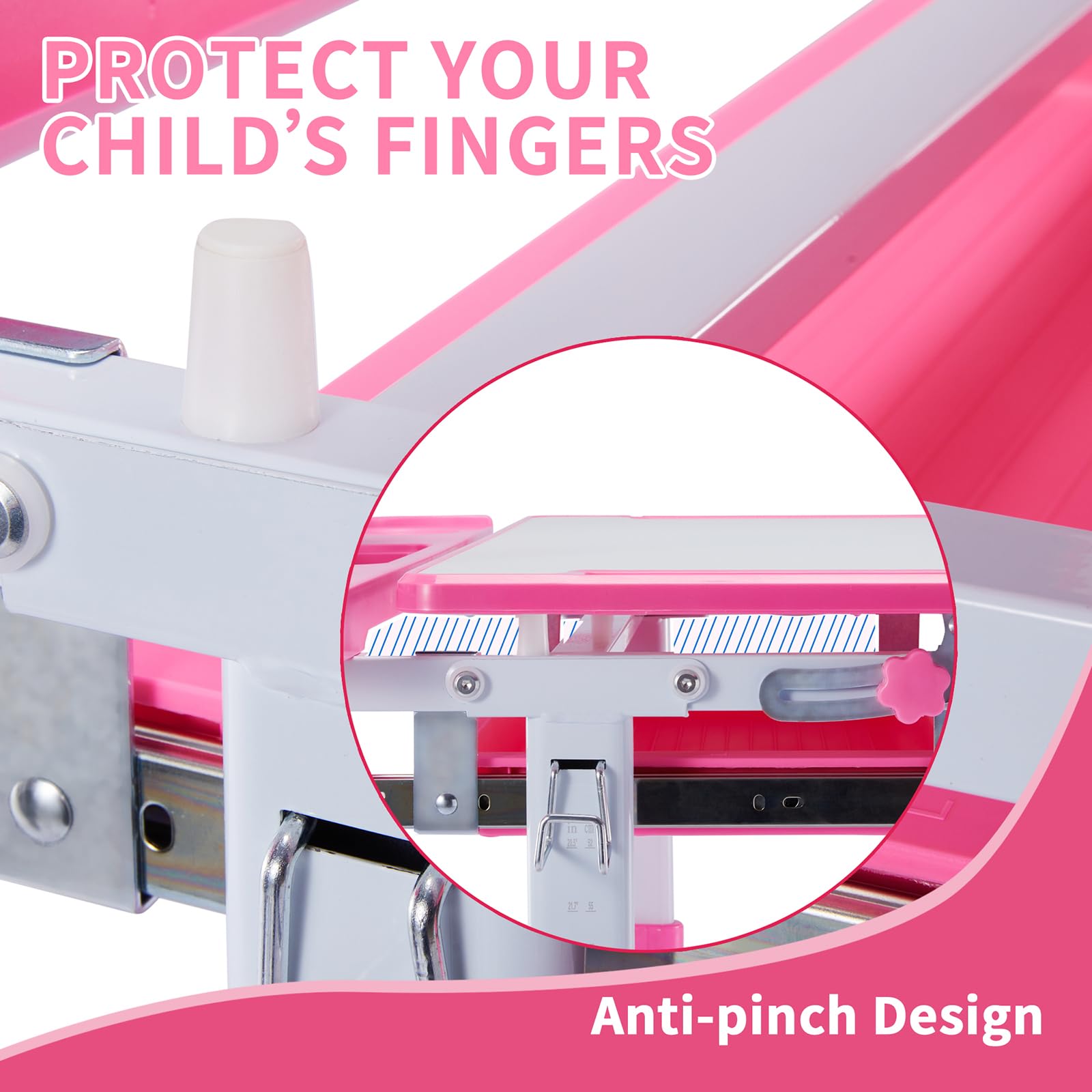 - Student Sturdy Table-Tiltable desktop: The desktop can be tilted in the range of 0~40°,promotes good posture for children and protects their eyesight. Besides, this desk is equipped with anti-pinch stoppers to prevent hands from being pinched when kids rotate the desk.