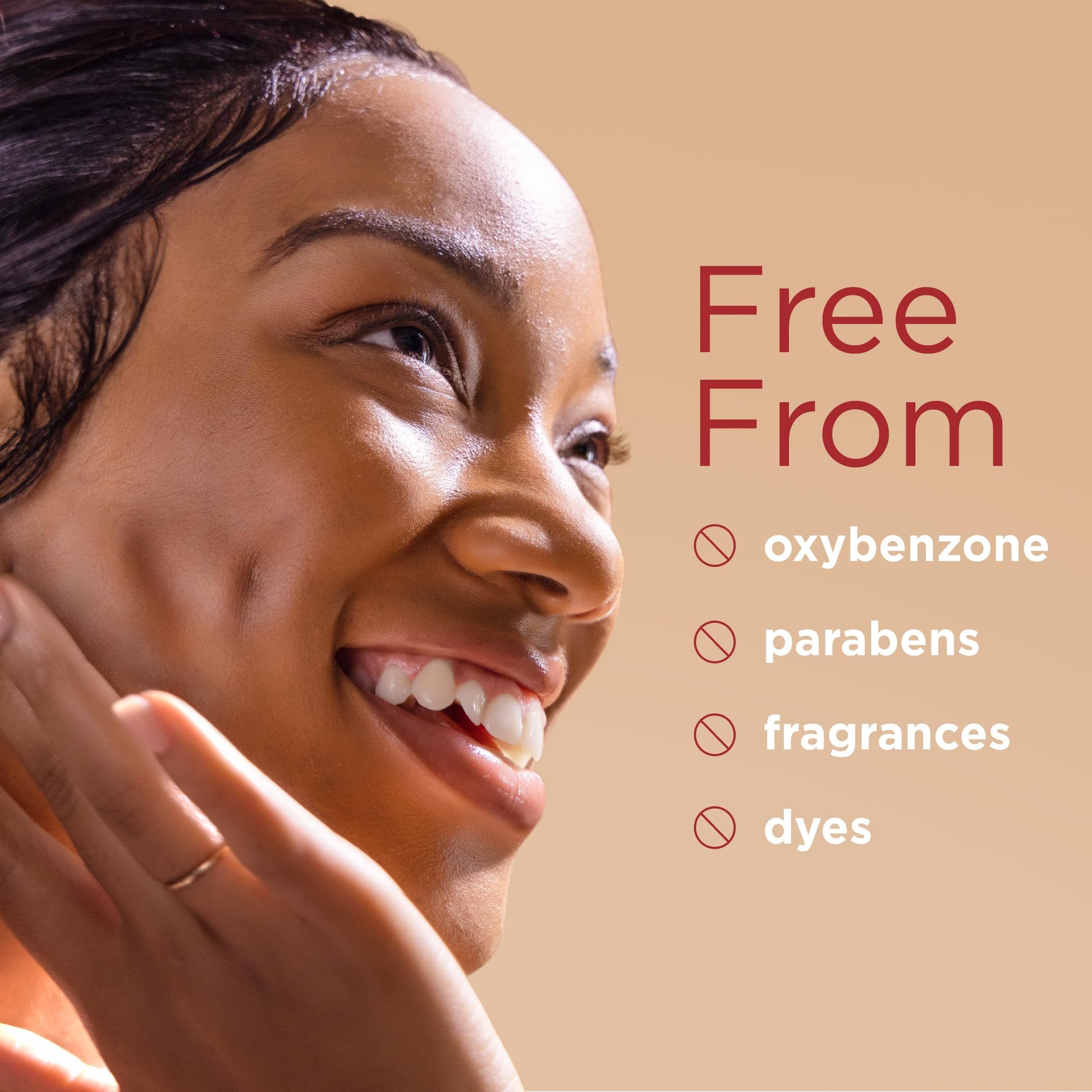 - This tinted face sunscreen for sensitive skin contains Zinc Oxide, Niacinamide, Hyaluronic Acid and an antioxidant to promote the appearance of healthy-looking skin and reduce skin dryness and redness