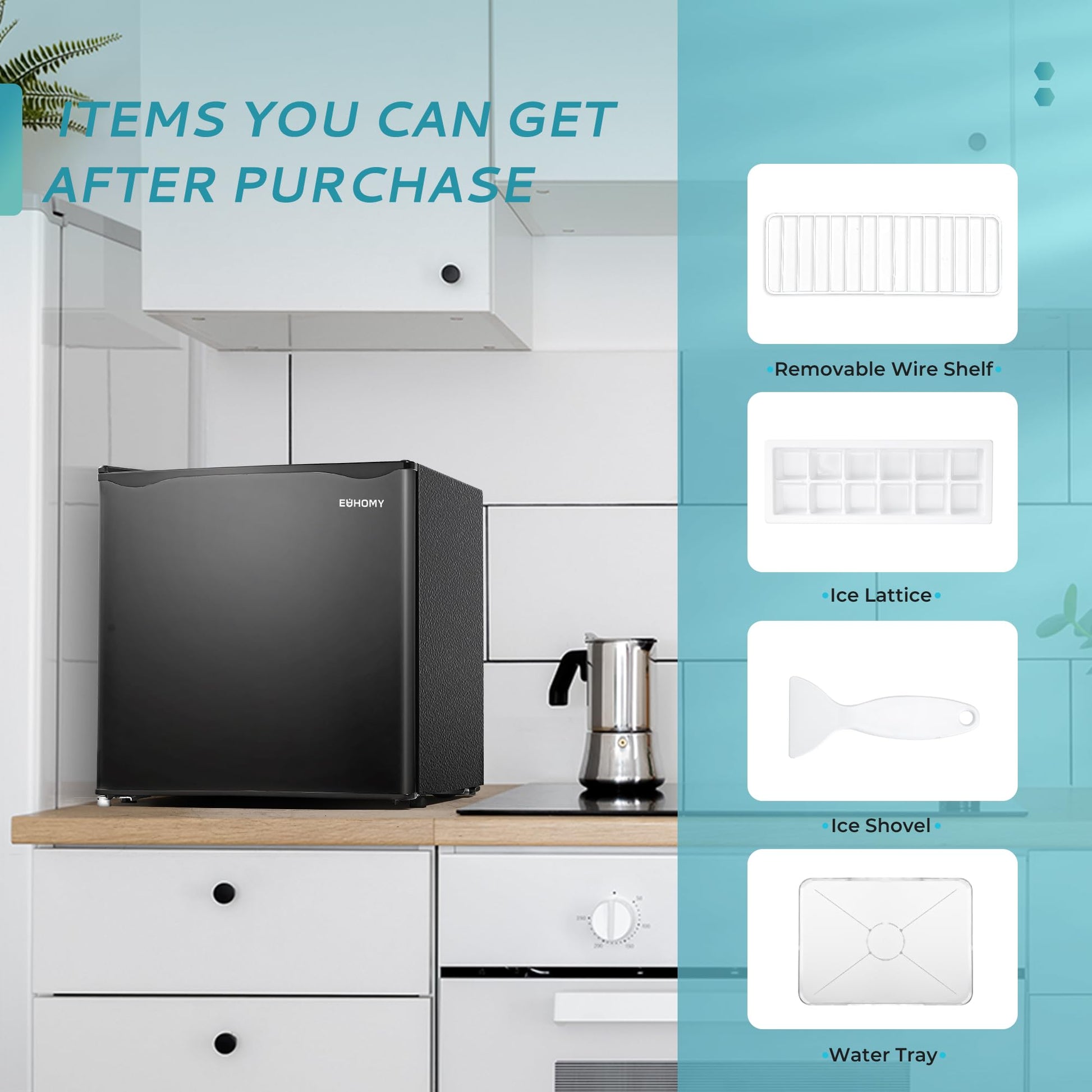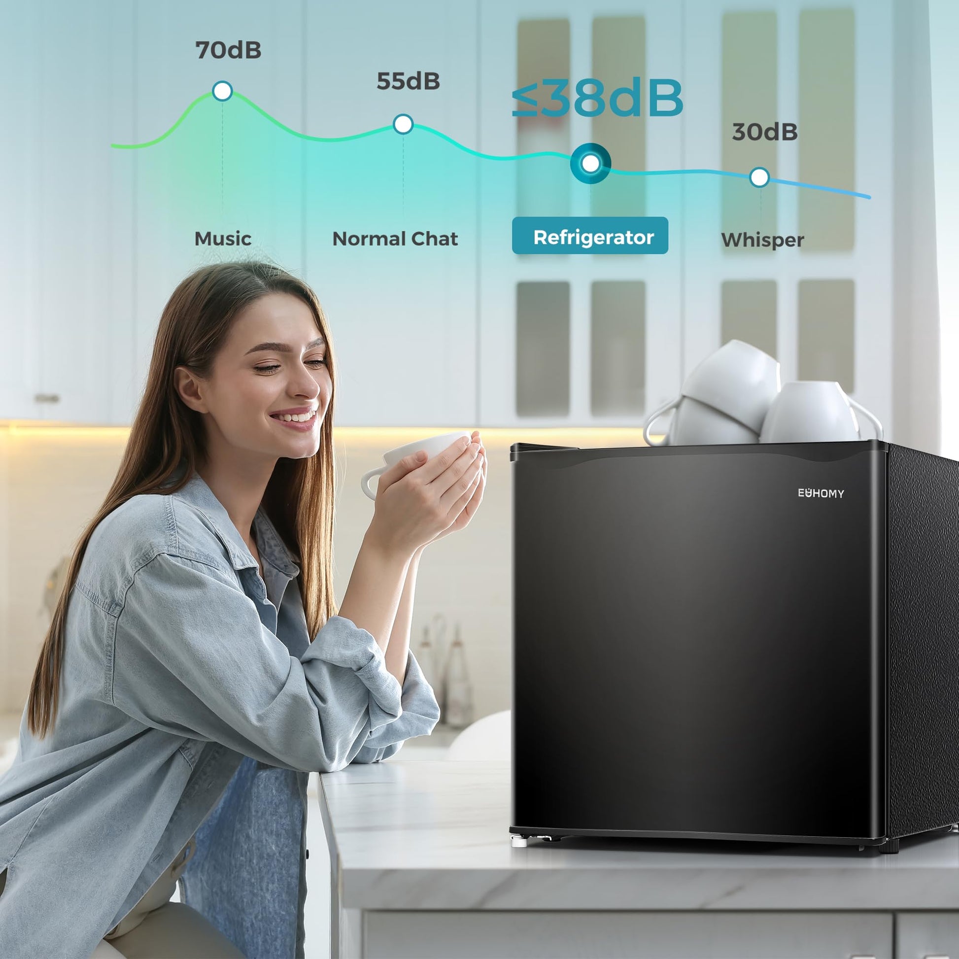 EUHOMY 1.7 Cu.Ft Mini Fridge with Freezer, Reversible Single Door Compact Refrigerator, Adjustable Thermostat, Energy Saving, Mini Fridge for Bedroom, Office, Dorm, Black.