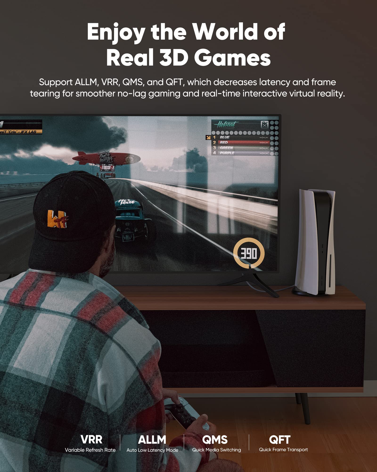 - 【For Game Enthusiasts】 This 8K Ultra High Speed HDMI Cable is not limited to 4K@60HZ, it can break through 4K and achieve 8K ultra-high image quality. It can also achieve a super smooth picture of 4K@120HZ. Its latest game mode supports variable refresh rate, maximizes the value of the graphics card and CPU, and is more accurate in the processing of rendered images. When the scene is switched, the refresh rate will change accordingly to obtain a smoother and more detailed picture.