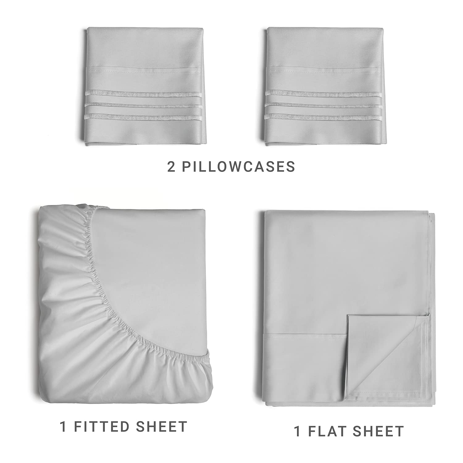 - 4 PIECE BED SHEET SET: 2 pillow cases and flat sheet and fitted sheet. Flat Sheet (108" x 102") Fitted Sheet (80”x 78”) 2 Pillow Cases (20”x 40”)
