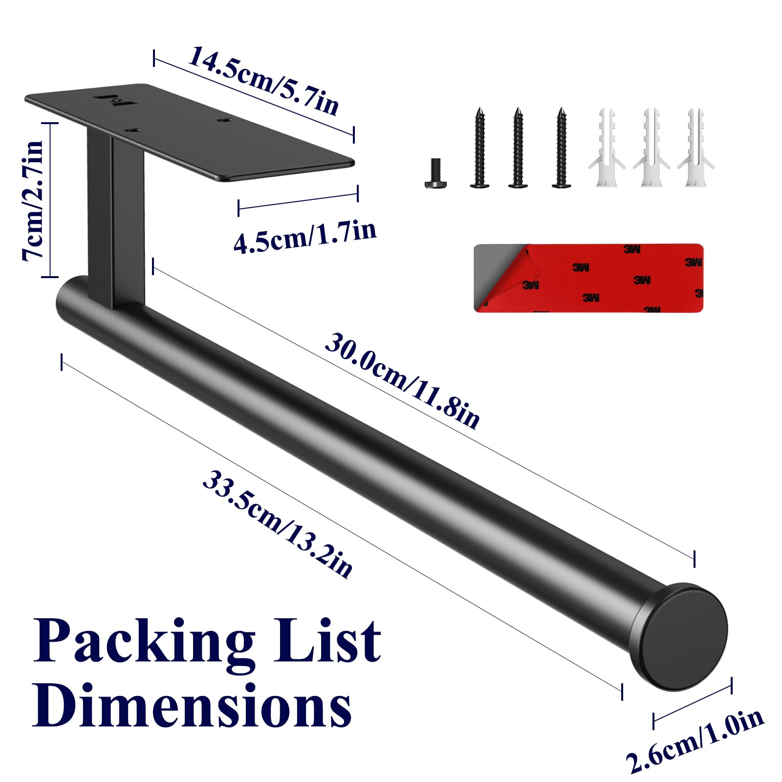 - MULTI-PURPOSE STORAGE: With an 11.8-inch holding length and 1.0-inch rod width, the Kitsure adhesive paper towel holder has versatile applications. This wall mount paper towel holder provides a convenient solution for hanging hand towels, storing kitchen utensils, or holding kitchen paper, plastic wrap, and aluminum foil rolls.