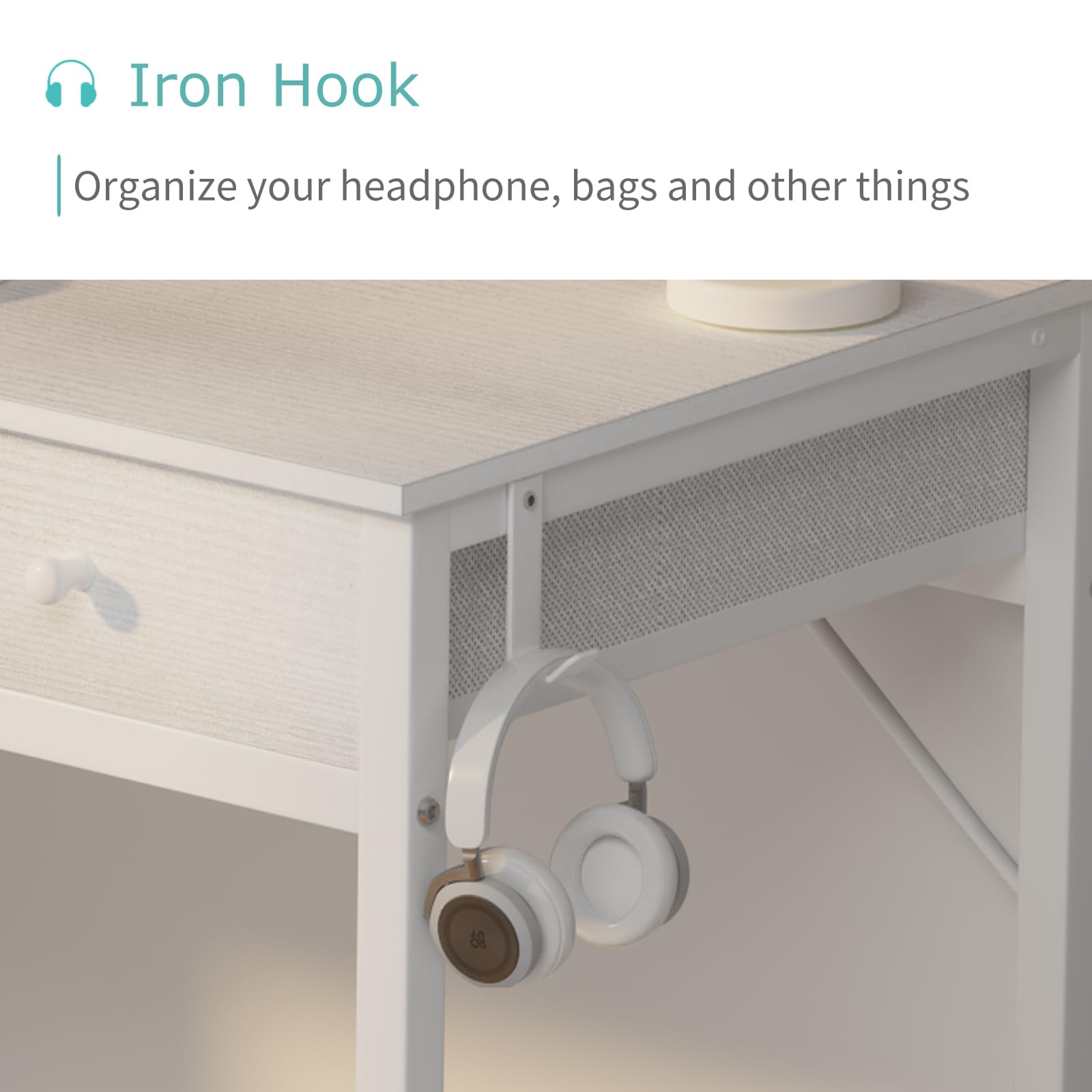 Lufeiya Small White Desk with Drawers - for Bedroom, 32 Inch Home Office Computer Desk with Fabric Storage Drawer and Bag, Study Writing Table for Small Spaces, White