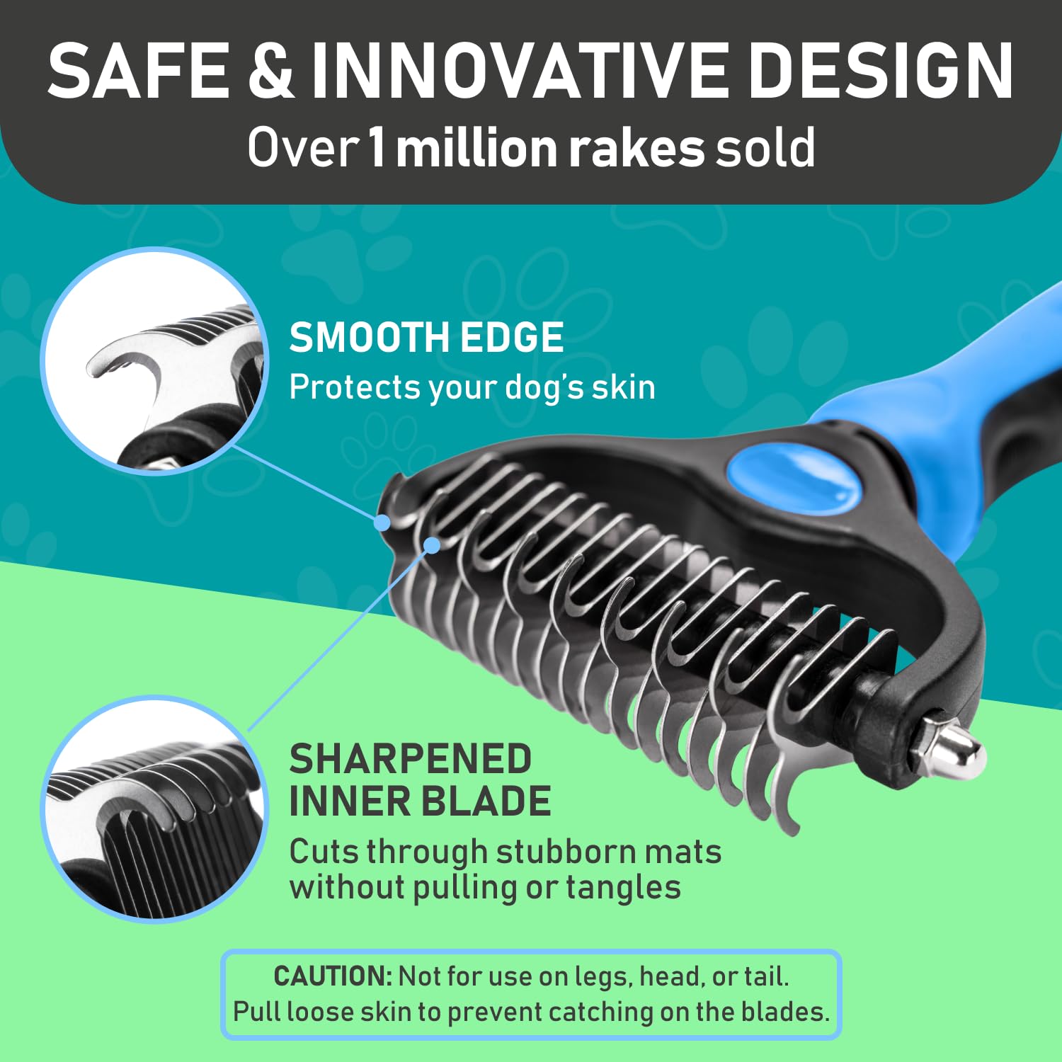 - EFFECTIVE DESHEDDING TOOL: Our dematting and deshedding tool gently removes loose hair and eliminates tangles, knots, dander, and trapped dirt. The perfect cat brush or dog grooming brush solution for pets with thick fur or dense double coats.