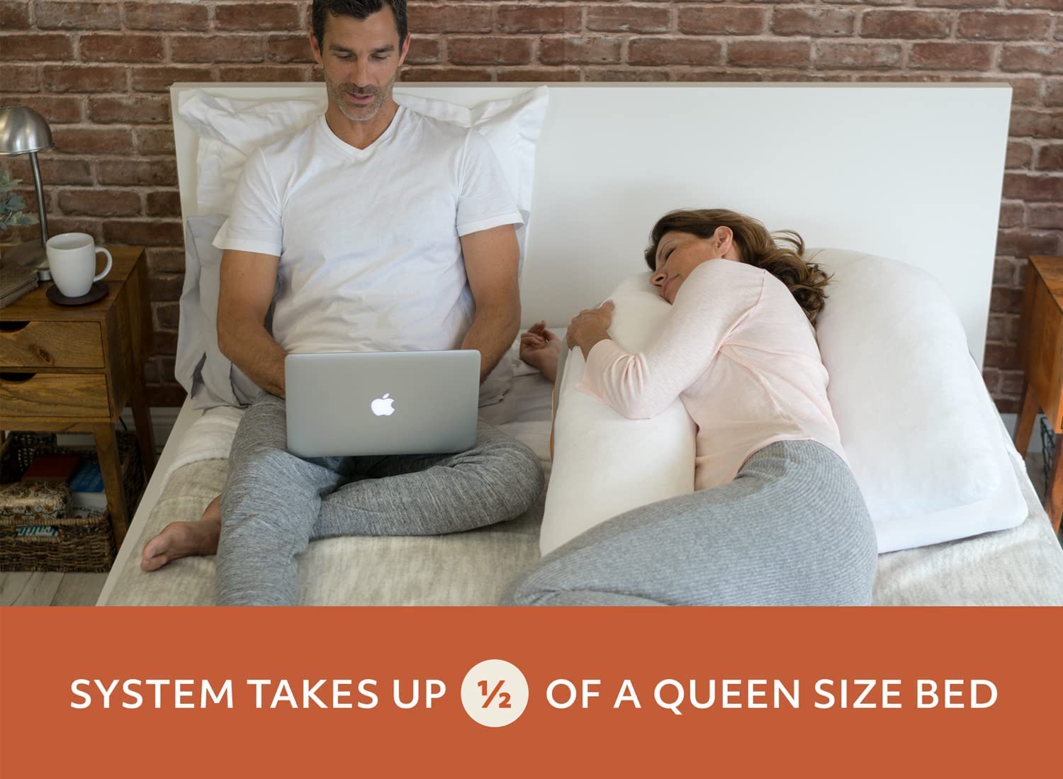 - IDEAL SLEEP POSITION. Patented tri-component system includes arm pocket to relieve pressure from your downside arm/shoulder and prevents sliding down to ensure a comfortable and restful night's sleep in the ideal position for natural reflux relief. System includes Advanced Positioning Bed Wedge, full length memory foam body pillow, and smaller insert pillow; all with removable covers. Size MEDIUM system fits individuals 5’5” – 5’11” in height. Full system measures 30” W x 50” L x 12.5” H