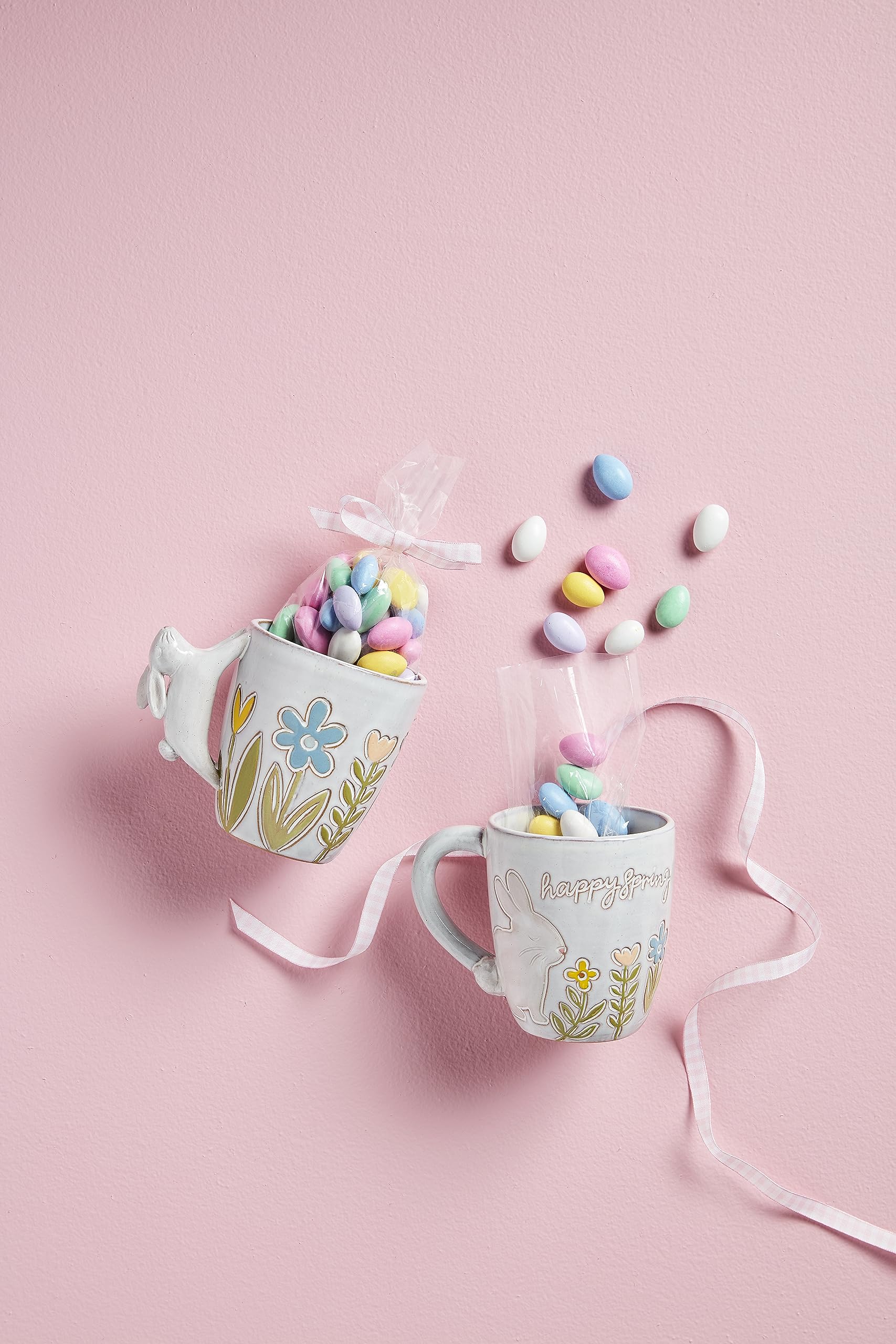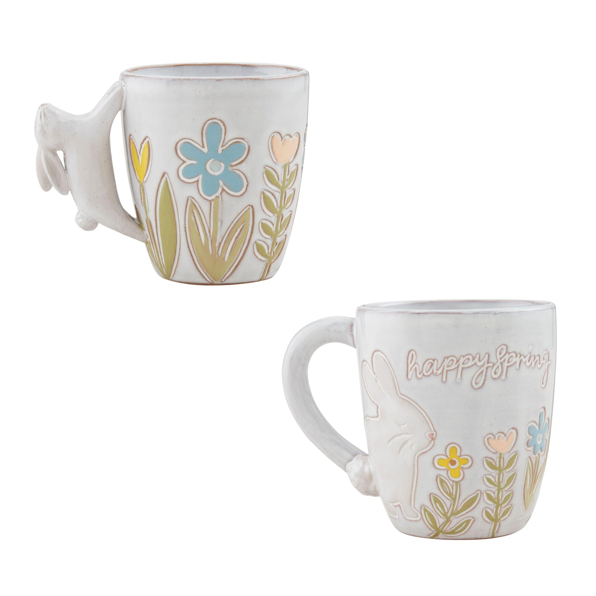 Details: Introducing our charming Bunny Handle Mug! Crafted from textured stoneware, this delightful coffee and tea mug adds a touch of homey elegance to your drinkware collection. Designed with a cute bunny handle, it's a perfect decorative piece too. Embrace the convenience of being dishwasher and microwave safe, although please take caution as it may get hot in the microwave. Elevate your sipping experience with this 4" height stoneware mug, making it a delightful Easter gift for your loved ones. Ideal for enjoying your favorite beverages with a dash of whimsy and style.