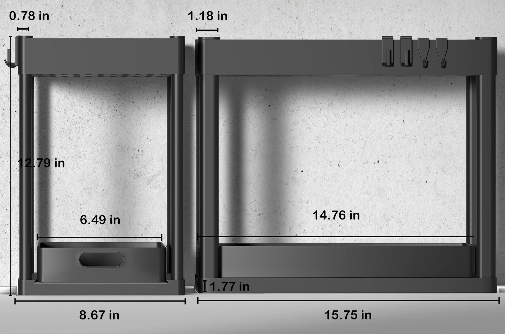 - 【Easy to Install】Bathroom organizer can be easily installed without any tools, the product size is 15.75 L x 8.67 W x 12 H.Equipped with 2*2 removable hooks for hanging small objects.