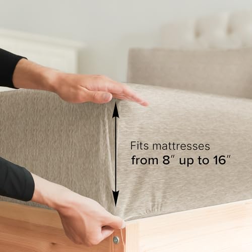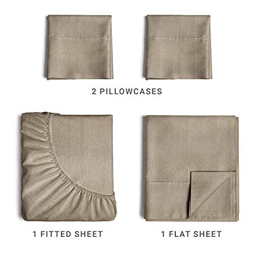 Queen Size 4 Piece Sheet Set - Comfy Breathable & Cooling Sheets - Hotel Luxury Bed Sheets for Women & Men - Deep Pockets, Easy-Fit, Soft & Wrinkle Free Sheets - Heathered Beige Oeko-Tex Bed Sheet Set