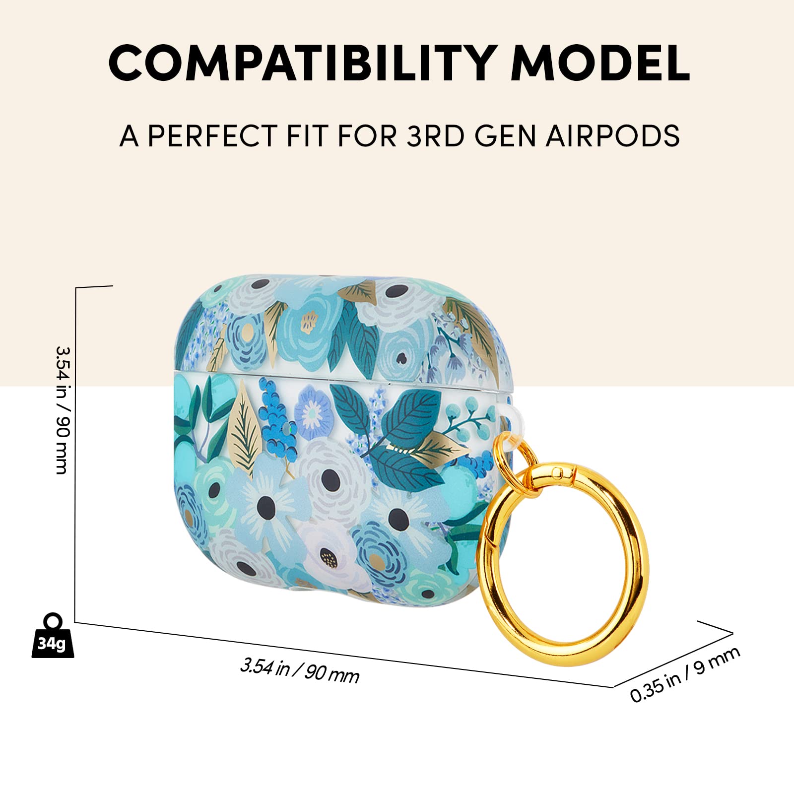 - Package Contents: 1 Unit of Rifle Paper Co. Airpods 3rd Generation Case with Circular Ring Clip - Garden Party Blue (fits AirPods 3rd Generation only, Airpods 3rd Generation is not included); One Year Limited Warranty