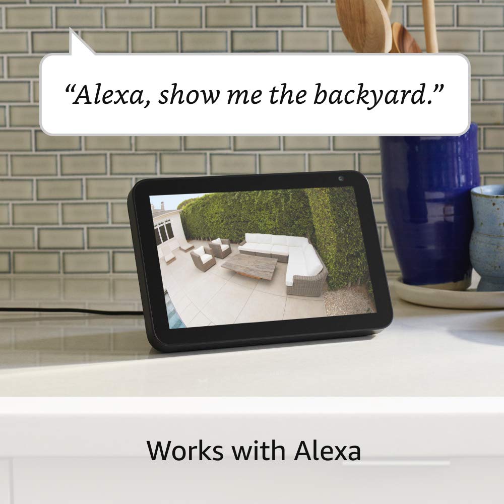 - For added peace of mind, pair with Alexa to help you keep an eye on your home. Connect with Alexa to hear motion alerts on your compatible Echo device or see a Live View with an Echo Show, Fire TV, or Fire Tablet. Talk to visitors by saying, “Alexa, talk to the front door.” With a Ring Protect plan (subscription sold separately), Alexa can also make voice announcements and automatically show live video feed on an Echo Show, Fire TV, or Fire Tablet when your Ring Floodlight Cam detects a person.