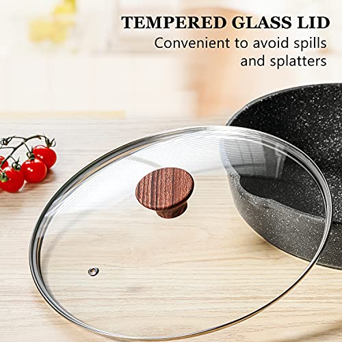SENSARTE Nonstick Deep Frying Pan Skillet, 10/11/12-inch Saute Pan with Lid, Stay-cool Handle, Chef Pan Healthy Stone Cookware Cooking Pan, Induction Compatible, PFOA Free (10-Inch)