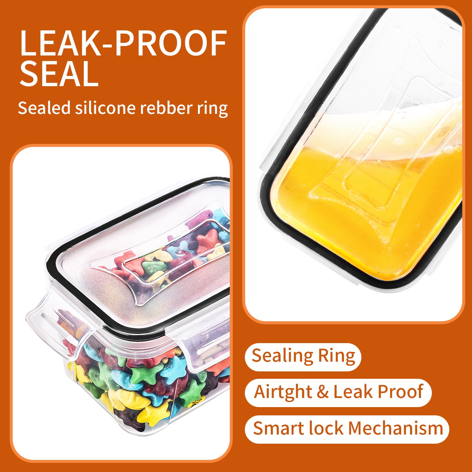 - Airtight Locking Lids - The side-locking lids with silicone gaskets make black food storage containers with lids for pantry airtight, which ensures airtight protection, liquid friendliness, and prolonged food storage. So you don't need to worry about your favorite foods turning stale anymore! Plus, except for the 0.24L lid that is not universal, other sizes (2.8L, 2.0L, 1.4L, 0.8L, 0.52L) of lids can be shared.