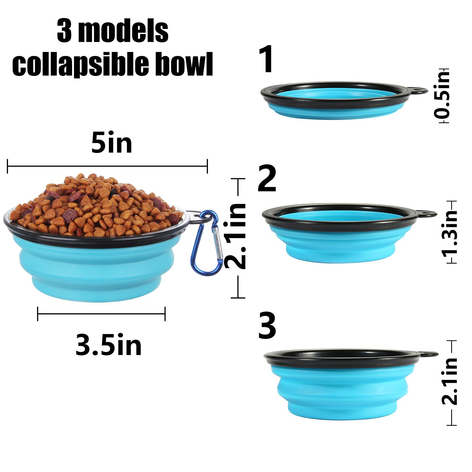 - SUITABLE SIZE: 5*3.5*2.1inch(expanded), 0.5inch height(folded), each bowl holds up to 12 oz of water or 1.5 cups of pet food or water, small and lightweight for all small to medium dogs,may not suitable for large breed dogs.