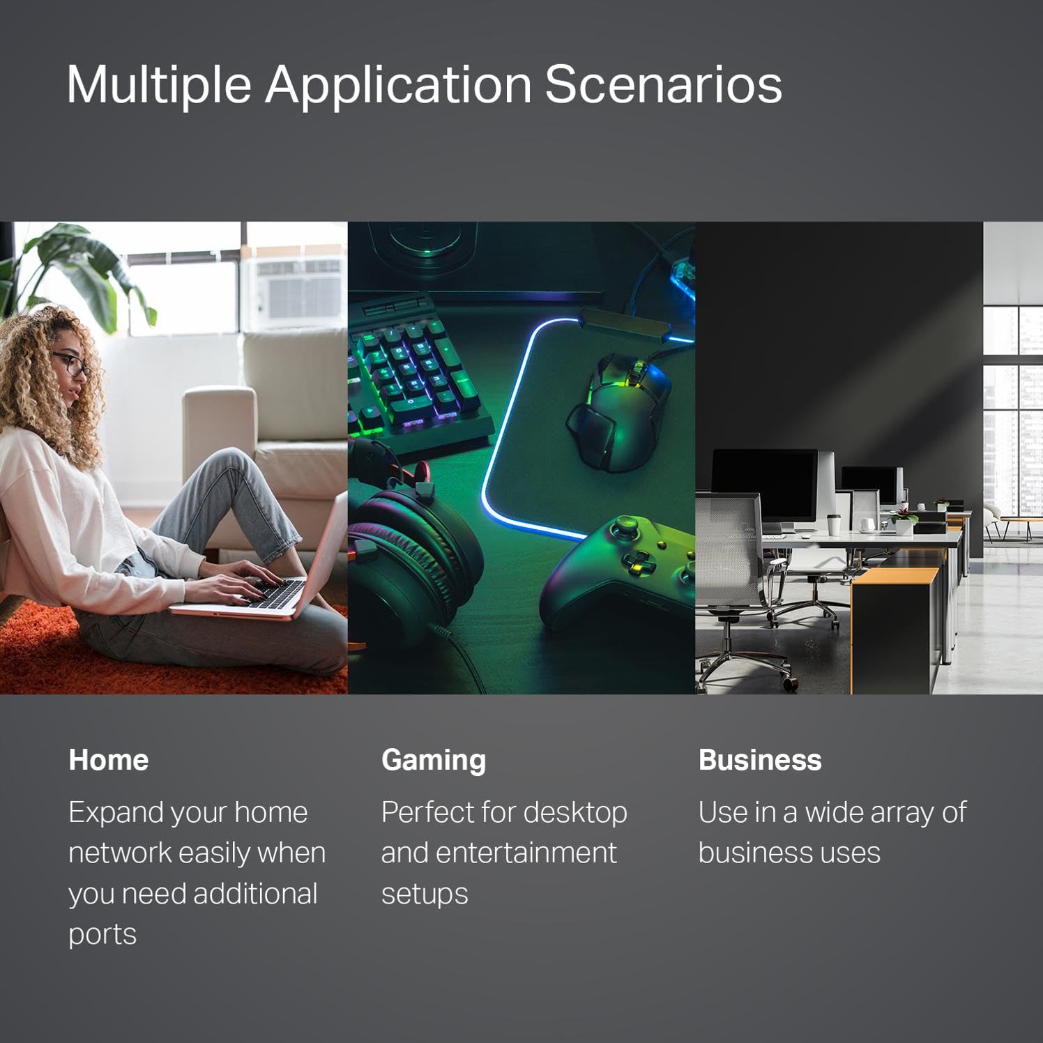 - One Switch Made to Expand Network 8× 10/100/1000Mbps RJ45 Ports supporting Auto Negotiation and Auto MDI/MDIX, Plug and play, no configuration needed