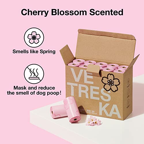 VETRESKA Dog Poop Bag Dispenser with Cherry Blossom Scented Bags, Leak Proof, Extra Thick Waste 1 Count Holder and 105 Bags for Walking Cats Litter, Pink