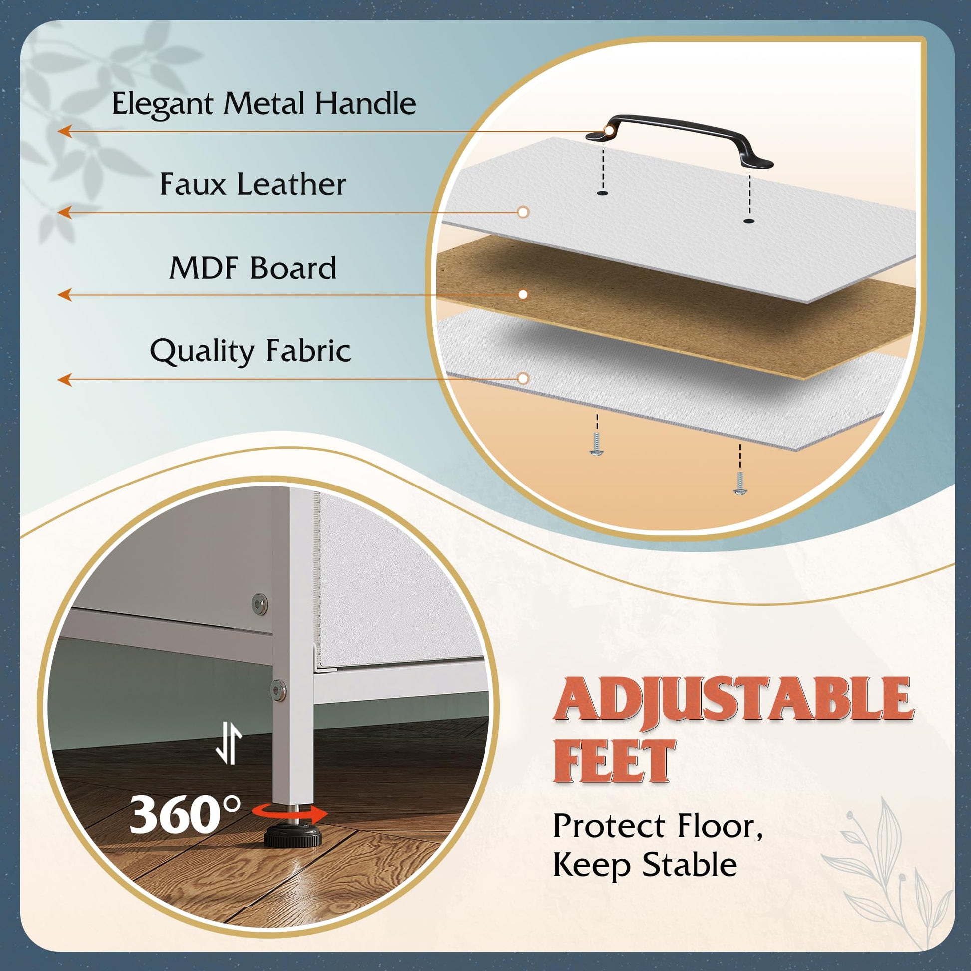 - 𝟔 𝐃𝐑𝐀𝐖𝐄𝐑 𝐂𝐇𝐄𝐒𝐓:The Chest of Drawers features easy-to-pull arch handles, storage drawers made of high-quality non-woven fabric, and adjustable feet that protect floor from scratches.
